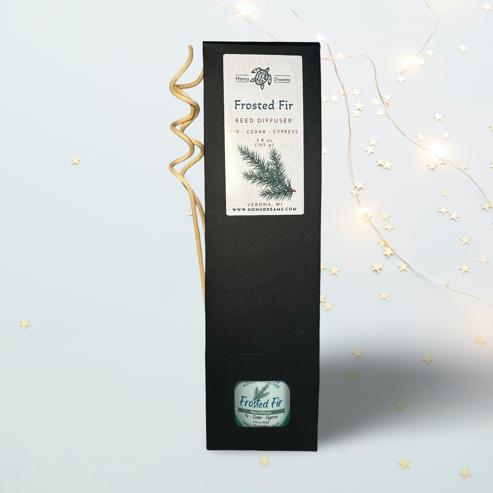 Enjoy the fresh, woodsy scent of fir trees—no flame required. Our Frosted Fir reed diffuser blends fir, cedar, and cypress for a crisp, natural aroma that lasts.