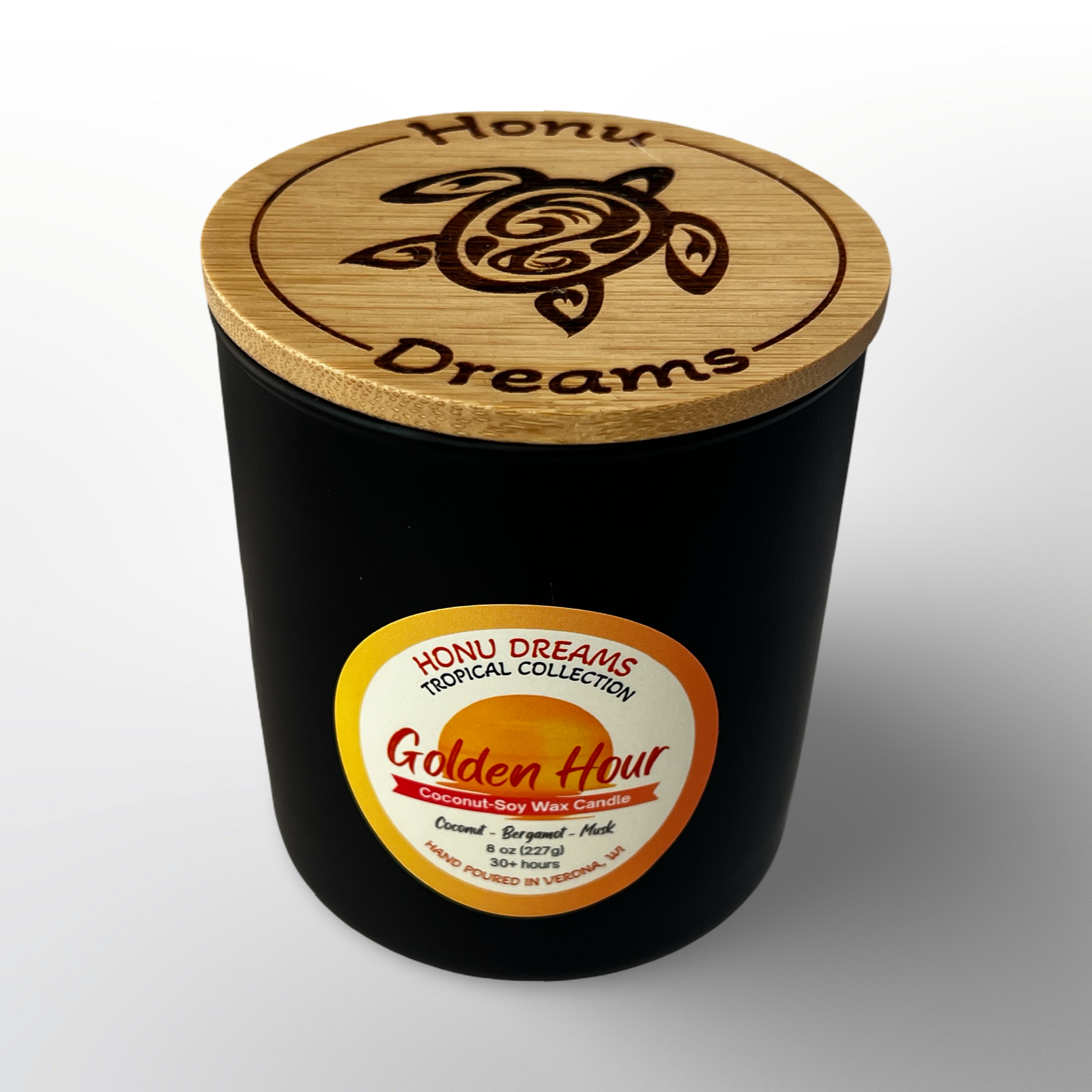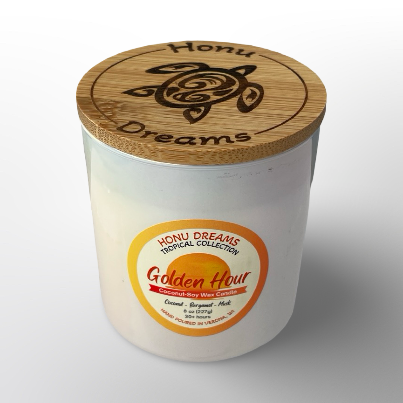 Immerse yourself in the serene glow of the Golden Hour candle, where the refreshing citrus notes of orange and bergamot mingle with the tropical whispers of coconut and gardenia. The warm undertones of musk, amber, and vanilla create a cozy, yet invigorating ambiance that mirrors the tranquil beauty of a sunset over the ocean.